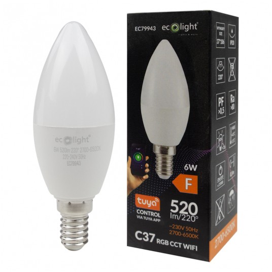 CANDLE E14 6W RGB CCT 520lm Wifi tuya EC79943