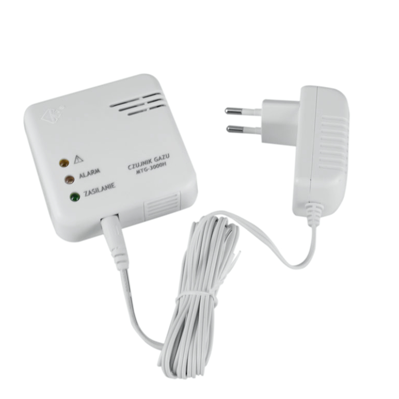 Czujnik gazu ziemnego zasilany jest bezpiecznym napięciem 12V DC za pośrednictwem zasilacza sieciowego dostarczonego w komplecie. Może być montowany w pomieszczeniach, w których temperatura nie spada poniżej -10°C i nie wzrasta powyżej 40°C (okresowo -20 ~ 50°C) oraz wilgotność względna nie przekracza 95%.