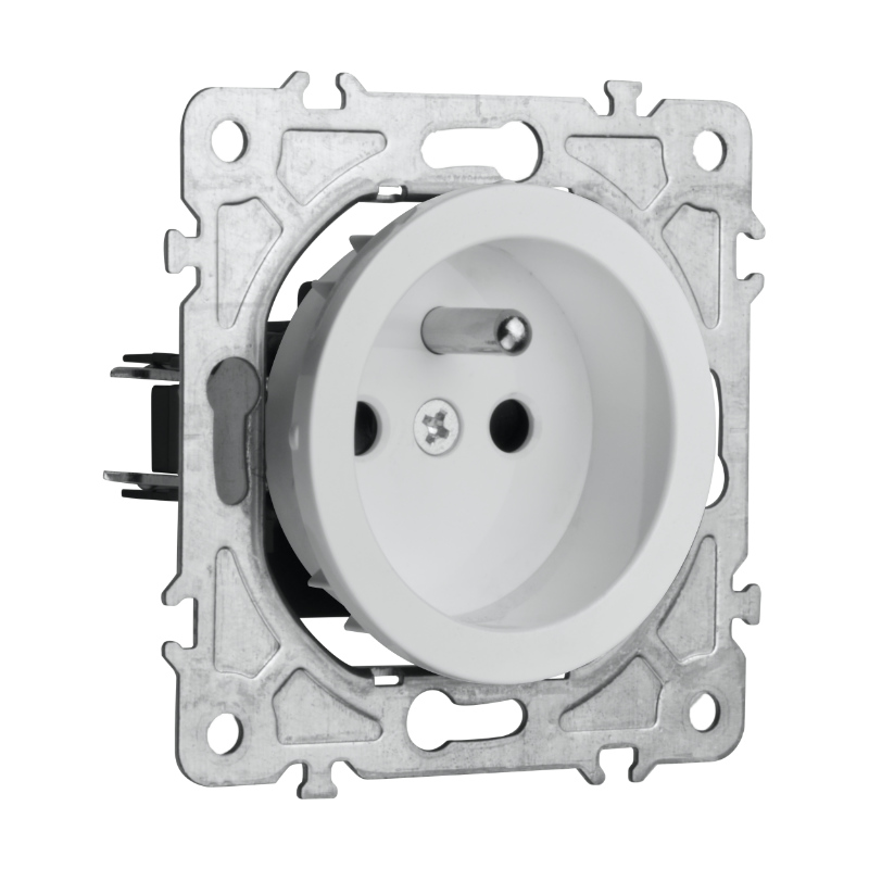 Gniazdo wtyczkowe typu E (francuskie, europejskie) jest podstawowym elementem osprzętu elektrycznego. Nasze gniazdo elektryczne posiada uziemienie oraz przesłonę torów prądowych, która zapewnia bardzo dobre zabezpieczenie przed porażeniem.