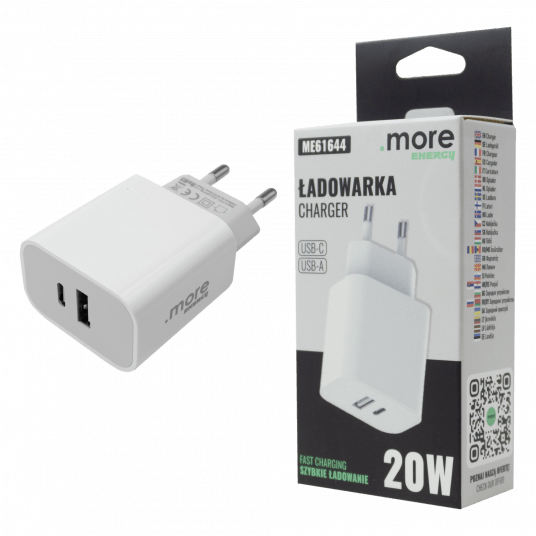 Ładowarka sieciowa 20W USB-C + USB-A biała ME61644