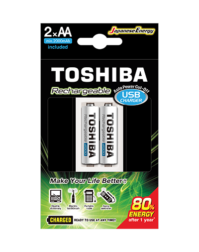 Ładowarka Toshiba + 2 akumulatorki AA 2000mAh