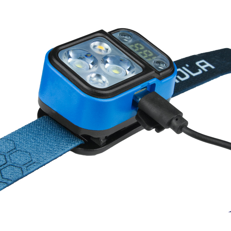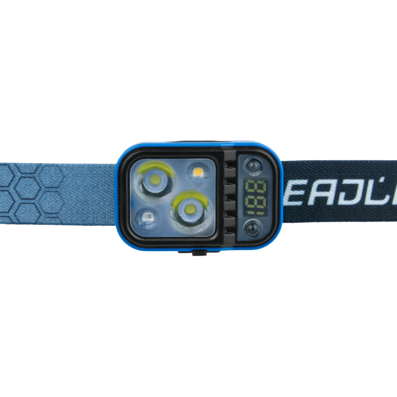 Regulowany pasek czołowy gwarantuje komfortowe dopasowanie do różnych rozmiarów głowy, a lekka konstrukcja sprawia, że lampa jest wygodna w długotrwałym użytkowaniu. Kolor niebieski nadaje urządzeniu nowoczesny wygląd, wyróżniając je spośród standardowych modeli.