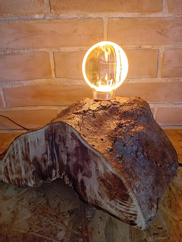 Lampa handmade wykonana z części pnia zachwyca swoim surowym nawiązaniem do natury. Będzie pięknie oświetlać pomiszczenia w stylu minimalistycznym czy skandynawskim, a ozdobna żarówka filamentowa podkreśli jej urok.