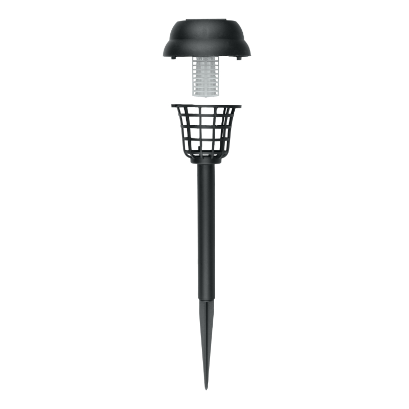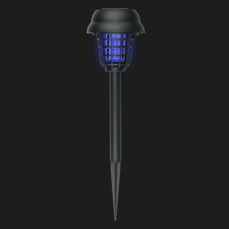 Solarna lampa LED do walki z owadami latającymi, pełniąca również funkcję oświetlenia ogrodowego. Światło UV LED przyciąga owady i neutralizuje je za pomocą napięcia elektrycznego. Ten produkt to jeden z najtańszych i najbezpieczniejszych sposobów ochrony przed ukąszeniami komarów bez konieczności stosowania toksycznych sprayów i środków chemicznych.