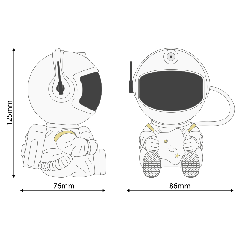 Lampka została zaprojektowana w konstrukcji uroczego astronauty, który trzyma świecącą gwiazdkę. Nowoczesny, minimalistyczny wygląd sprawia, że doskonale pasuje do każdego wnętrza, od pokoju dziecięcego po elegancki salon.