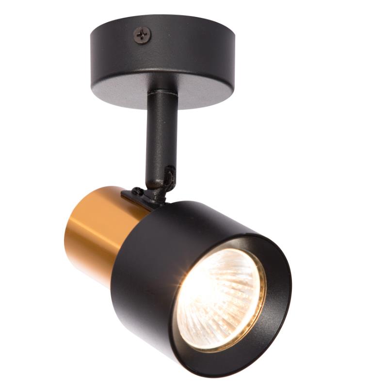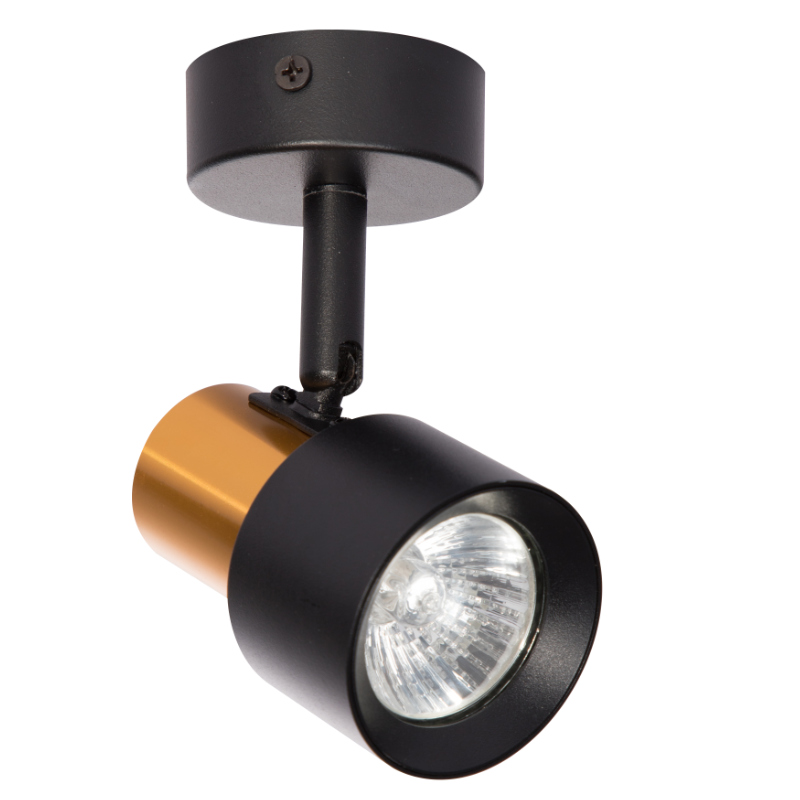 Nowoczesna lampa sufitowa posiada ruchomy dekoracyjny czarno-złoty reflektorek. Uniwersalna kolorystyka sprawia, że lampa jest idealnym dodatkiem do każdego wnętrza, któremu doda niepowtarzalnego charakteru. Lampa doskonale będzie się prezentować w salonie, sypialni, czy biurze, ale również możemy ją zastosować we wnętrzu komercyjnym.