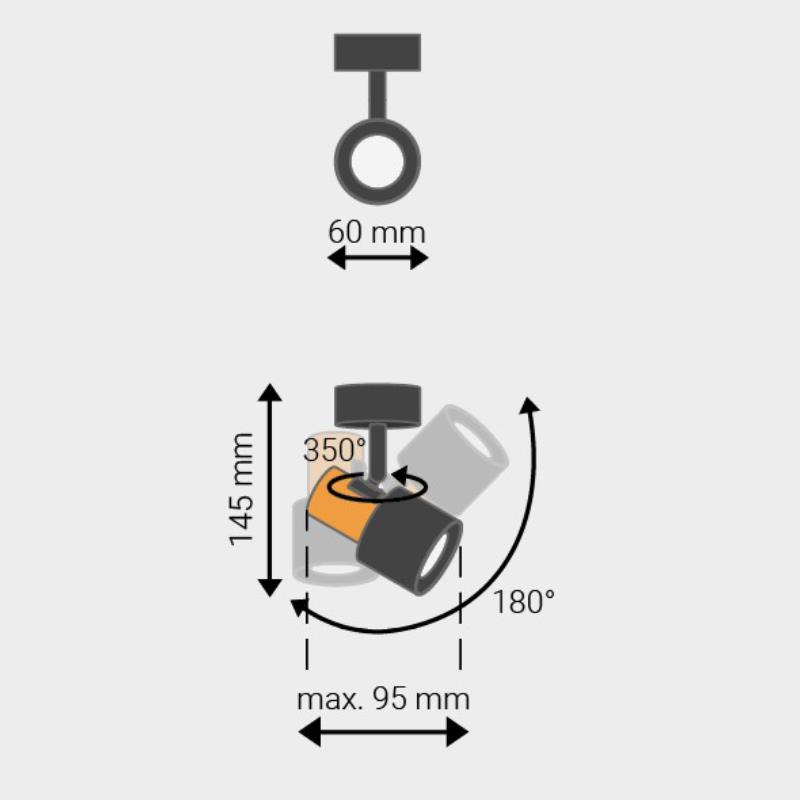 Regulacja kąta świecenia: 180° (w pionie) / 350° (w poziomie).