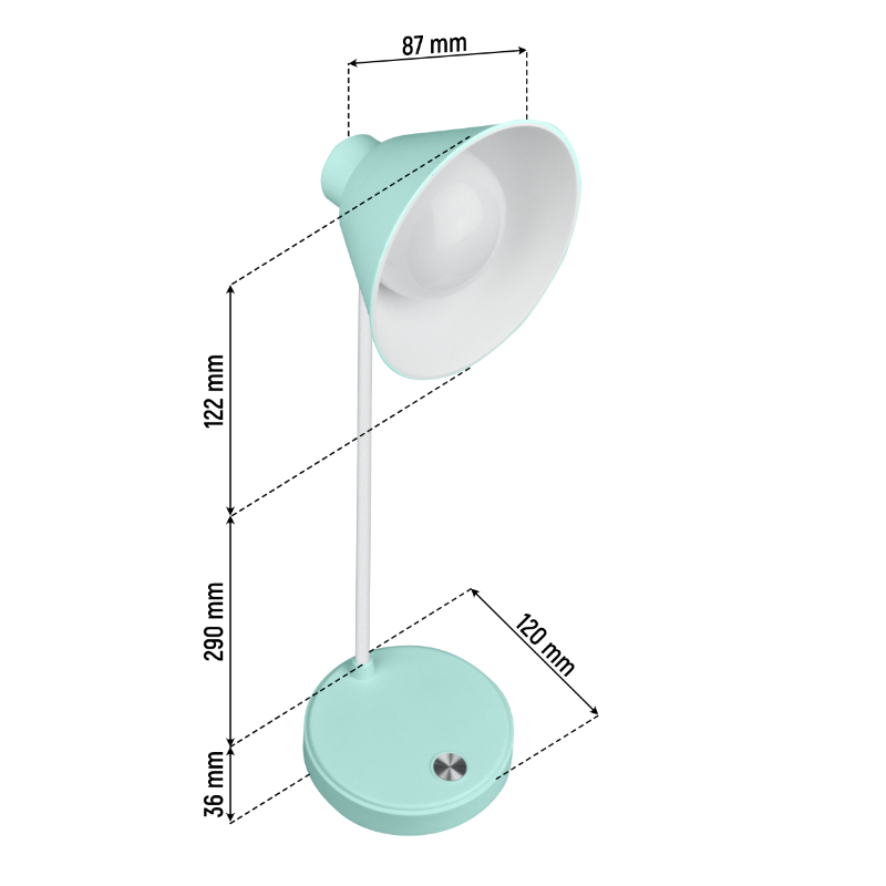 Lampka biurkowa LED to doskonałe rozwiązanie oświetleniowe do Twojego biurka. Dzięki technologii LED zapewnia jasne światło o natężeniu 150 lumenów, co sprawia, że praca przy biurku staje się przyjemniejsza. Dodatkowo, funkcja regulacji temperatury barwowej (CCT) pozwala dostosować światło do własnych preferencji. Miętowy kolor lampki nadaje wnętrzu nowoczesnego i świeżego wyglądu. Lampka biurkowa LED to połączenie funkcjonalności, energooszczędności i atrakcyjnego designu.