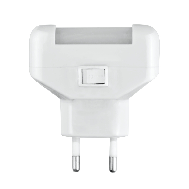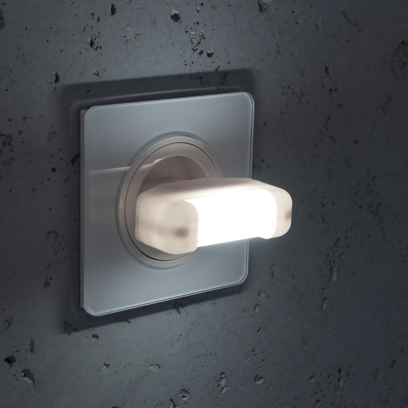 Lampka nocna LED z włącznikiem podłączana jest do gniazda sieciowego. Delikatne białe światło oświetli okolice szafki nocnej.