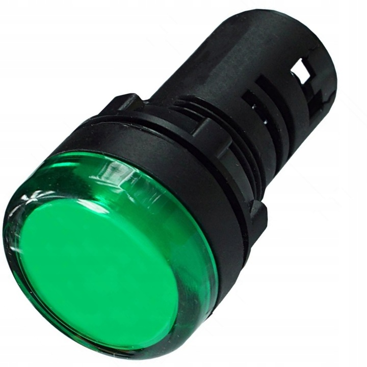 Wysokiej jakości LED-owa lampka sterownicza w kolorze zielonym o napięciu 24V. Prezentowana lampka gwarantuje intensywne świecenie zarówno w nocy, jak i w ciągu dnia.