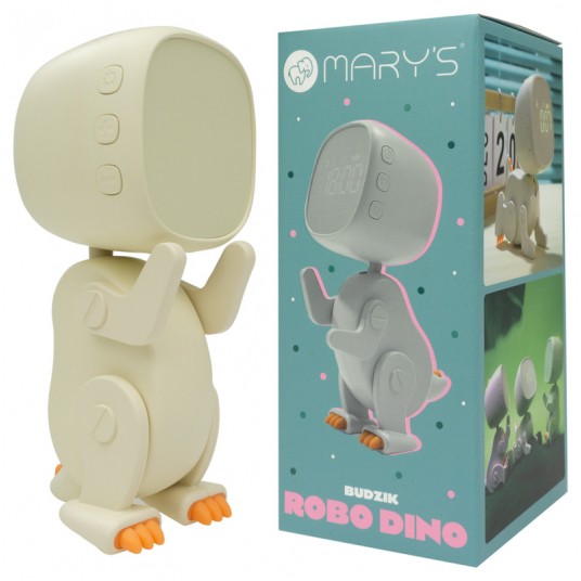 Budzik Robo Dino marki Mary’s łączy w sobie funkcjonalność i uroczy wygląd, przez co dodaje charakteru każdemu pomieszczeniu. Jego zabawny i oryginalny design wywoła uśmiech na twarzy każdego dziecka i pomoże w rozpoczęciu nowego dnia. Pojemny akumulator sprawia, że produkt może działać do 480 godzin po pełnym naładowaniu, czyniąc go praktycznym i eliminującym potrzebę częstego ładowania urządzeniem. Zegar ładowany jest za pomocą dołączonego do zestawu kabla USB, umożliwiając łatwe i wygodne ładowanie z różnych źródeł zasilania. Budzik zaprojektowano z wysokiej jakości materiałów, dzięki czemu jest odporny na uszkodzenia, gwarantując jego długotrwałe użytkowanie.