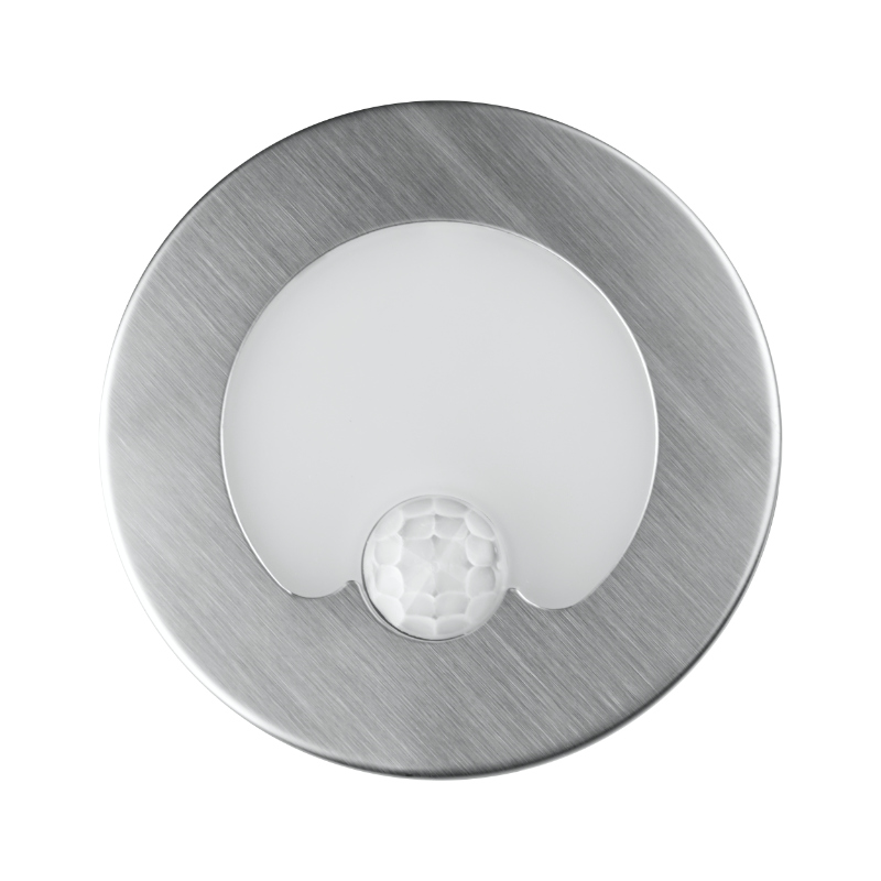 Oprawa LED schodowa z czujnikiem ruchu okrągła srebrna