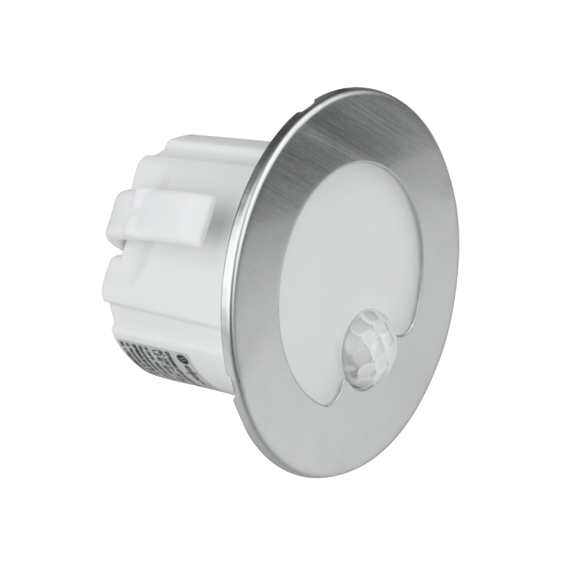 Oprawa schodowa podtynkowa z czujnikiem ruchu okrągła srebrna