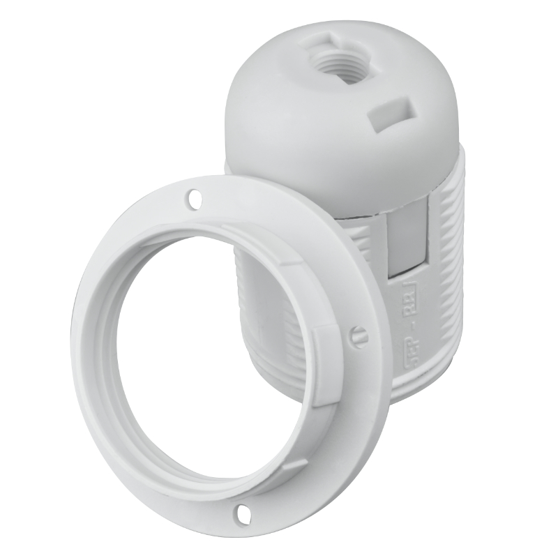 Oprawka E27 z gwintem i kołnierzem biała