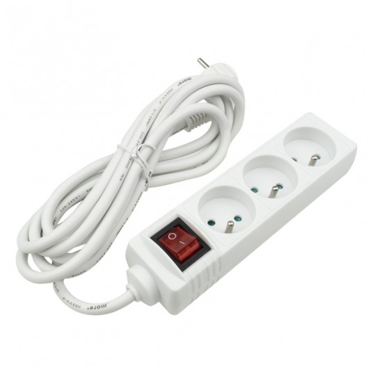 Przedłużacz 3 gniaz. 3m z/u z wyłącznikiem biały M20558
