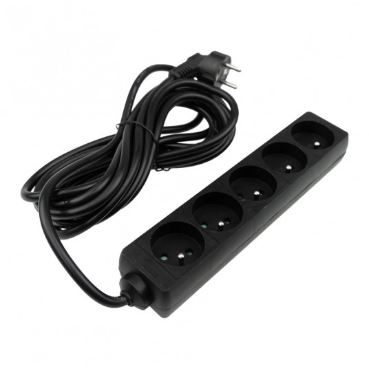 Przedłużacz 5 gniazd 5m 3×1.5mm2 czarny M20576