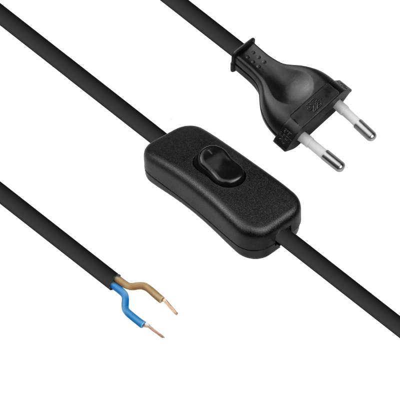 Przewód elektryczny z włącznikiem 2m czarny