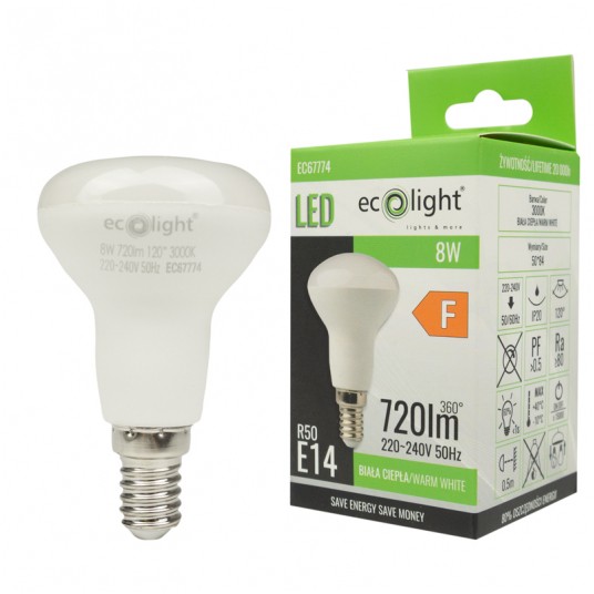 Napisz pierwszą opinię o „R50 E14 8W 3000K 640lm EC67774”