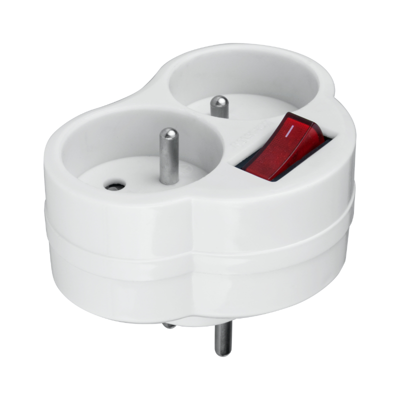 Rozgałężnik elektryczny z włącznikiem 2 gniazda z uziemieniem biały
