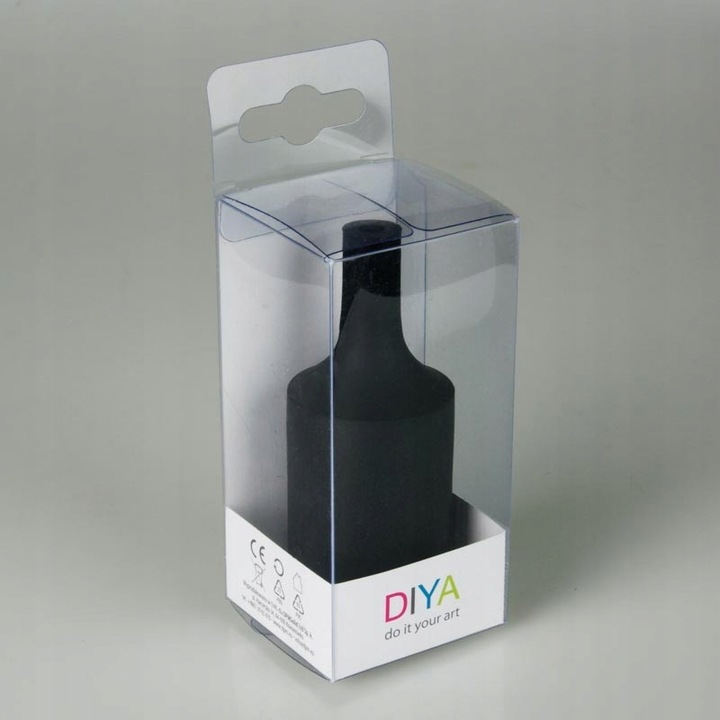 Oprawka do żarówki do stworzenia własnej instalacji oświetleniowej w Twoim domu. Osłona oprawki dekoracyjnej została wykonana z silikonu w kolorze czarnym a środek oprawki został wykonany z plastiku. W środku oprawki została zamontowana specjalna śrubka, która służy jako blokada kabla.