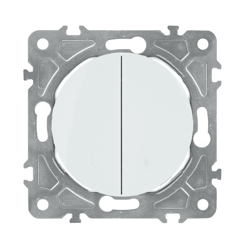 Włącznik podwójny przeznaczony jest do zapalania i gaszenia światła w pomieszczeniu. Dwa przełączniki sprawiają, że włącznik może być używany do lamp z przynajmniej dwoma kloszami lub do dwóch osobnych źródeł światła.