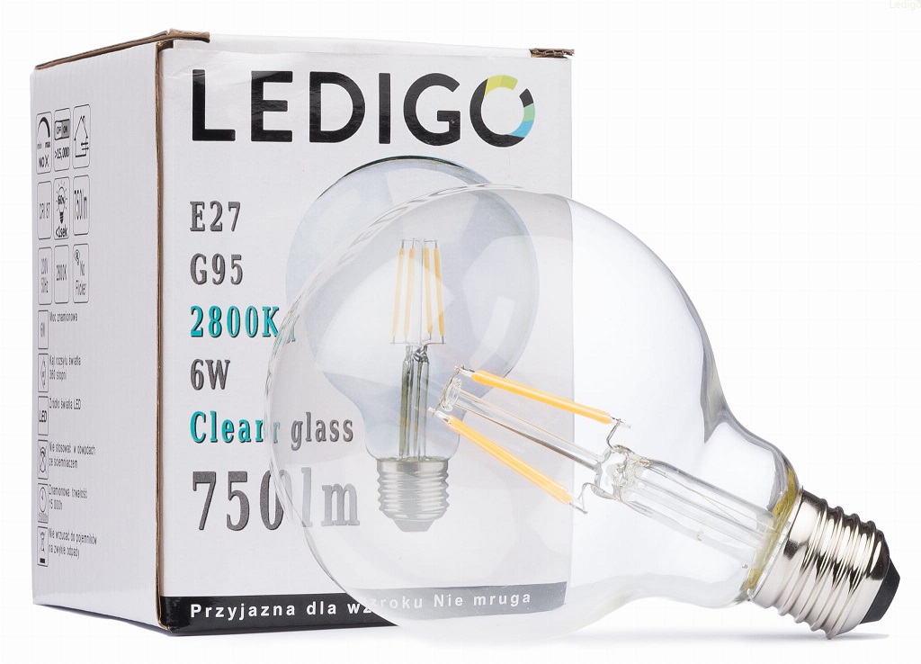 Żarówka G95 E27 6W filament clear