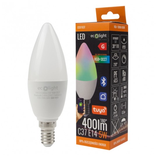 Żarówka LED C37 5W RGB+CCT Tuya Smart Bluetooth EC61637