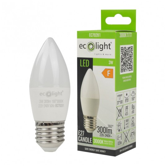 Żarówka LED CANDLE E27 3W 3000K 300lm EC79281
